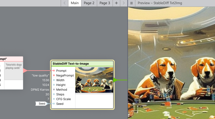 Ultraforge has AI nodes based on Stable Diffusion that generate images from descriptions and other images.