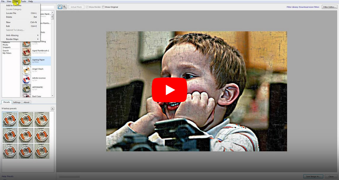 Open an image, apply effect, save an image. Filter editor introduction. What is anti-aliasing.